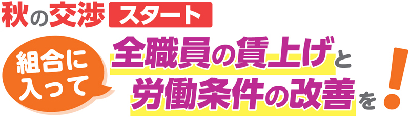 賃上げを実現し、働きやすい職場をつくるには労働組合の力が不可欠です。組合に入ってみんなで力を合わせましょう!